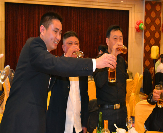 生日會上,公司領導向參加生日聚會的員工敬酒祝福,表演者為“壽星”獻上了唱歌、跳舞等精彩節目